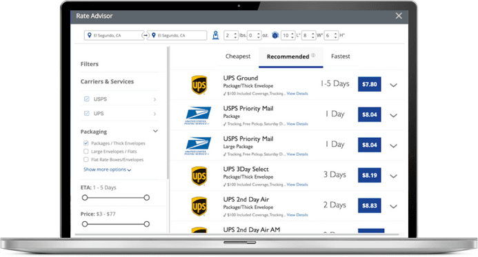 Trying to hunt down the most-cost-effective shipping option for every package can be confusing and time-consuming. Not anymore… thanks to Rate Advisor. Rate Advisor displays all the shipping options and rates based on your specific delivery criteria including price, delivery time and more.