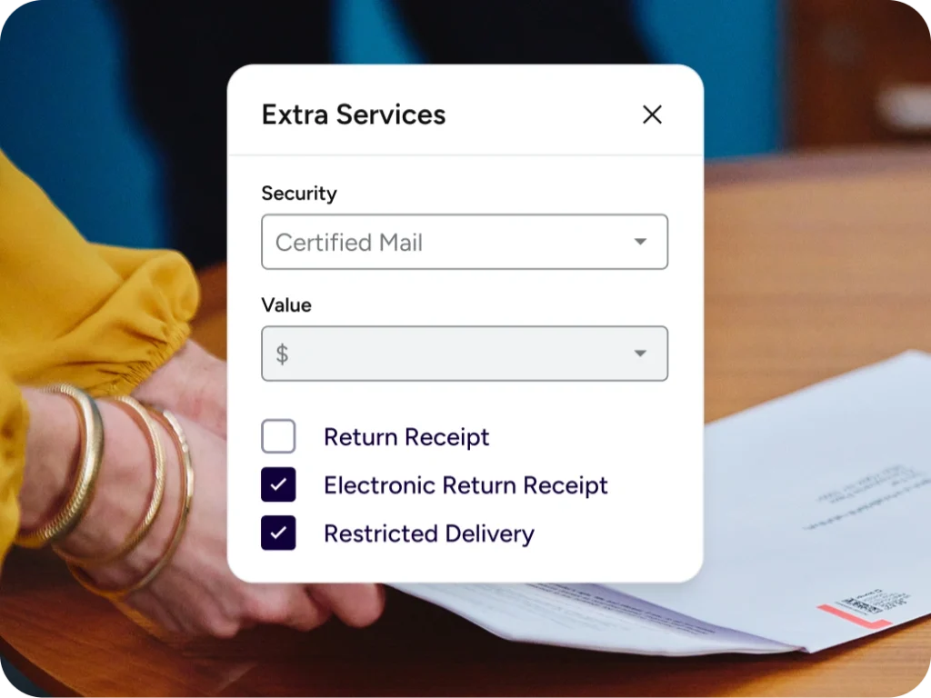 Deliver a smooth client experience. Send time-sensitive documents—compliance notices, tenant communications, HOA packets—with Certified Mail®, Electronic Return Receipt (eRR), and Restricted Delivery. Real-time tracking, digital records, and automatic address verification prevent costly reprints, delays, and compliance issues—so every packet arrives on time and accounted for.