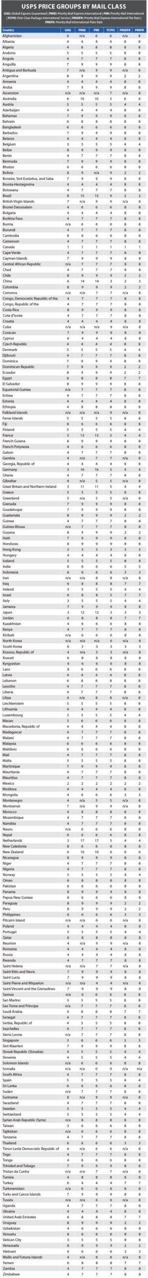 Not sure what price group to use for a flat rate envelope to Switzerland?  Check out the table below to determine shipping zones for your shipments for each country. Changes…