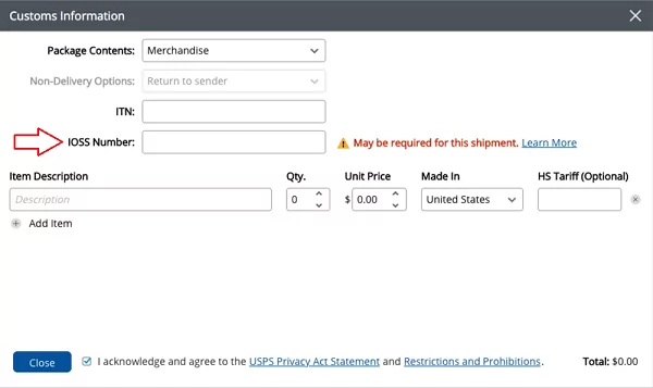 INSTRUCTIONS FOR INPUTTING VAT/IOSS NUMBERS INTO CUSTOMS FORMS USING STAMPS.COM
