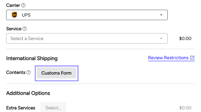 Extra Services: Extra services include return receipts, restricted delivery, COD, and special handling options. Available options will vary depending on which carrier and service you have selected.